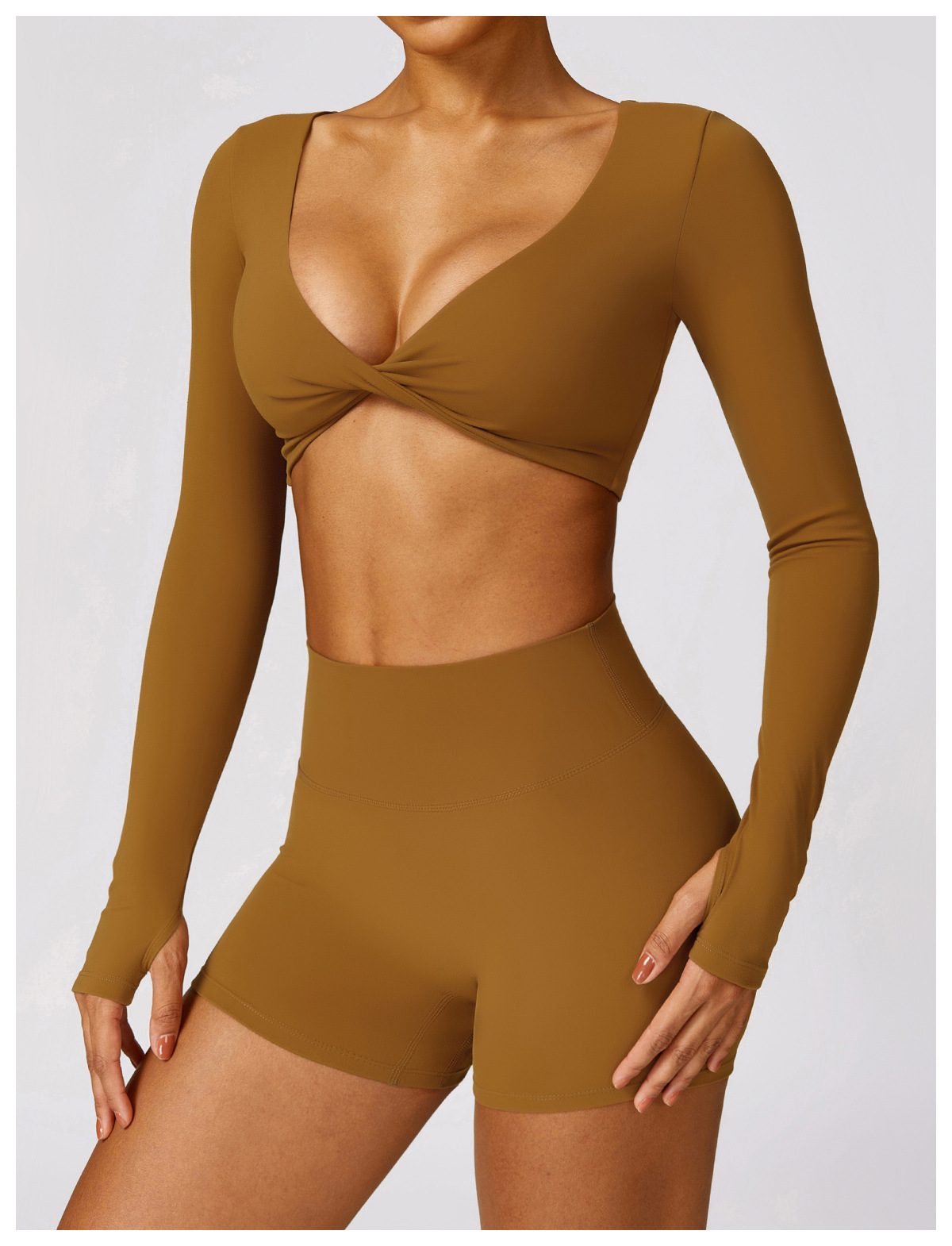 2024 Brushed Long Sleeve Yoga Suit Sexy Outerwear Tight Sports Suit Quick-Drying Running Fitness Clothes Two-piece Set